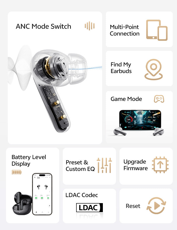 Con 3 sensores inteligentes por auricular, QCY PureSilenz™ bloquea ruidos de todas las direcciones. Disfrute de una cancelación de ruido ultrabanda ancha de hasta 5,5 kHz para una experiencia auditiva clara y sin interrupciones en cualquier lugar.